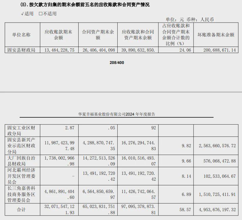华夏幸福2021年的应收账款是564.93亿元,到2024年的应收账款还有近500亿。