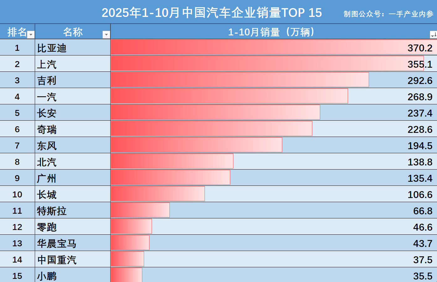 另附:2025年1-10月中国汽车企业销量15强厂商名单,数据源于:中国汽车工业协会。