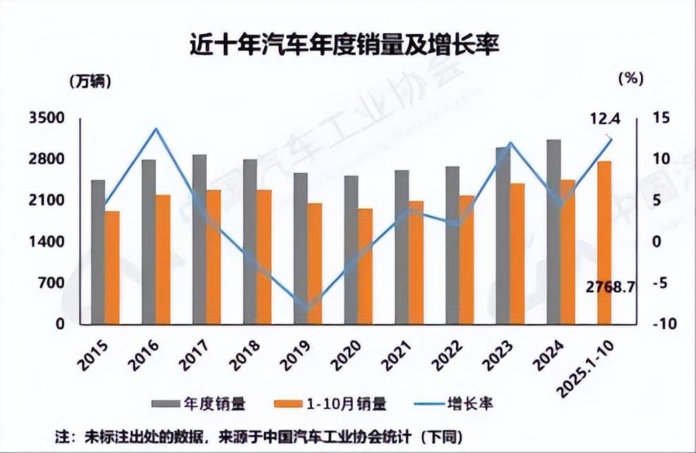 我国是全球最大的汽车消费市场,2025年1-10月国内销量为2207.2万辆,同比增长了11.7%。而同期国内车企的合计销量为2768.7万辆,除了占大头的国内市场,出口量也超过了500万辆。