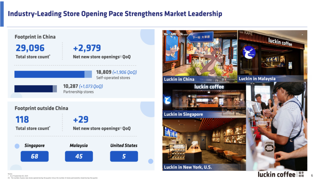 2025年第三季度,瑞幸净新开门店数达2979家,门店总数达29096家,比第二季度还要快。