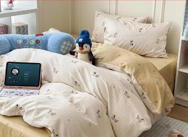 产品分为六件套和九件套两种SKU,六件套里面包含枕头、床垫、被子、床单、被套、枕套,九件套比六件套多了备用三件套,这是为宿舍生活量身定制的解决方案。