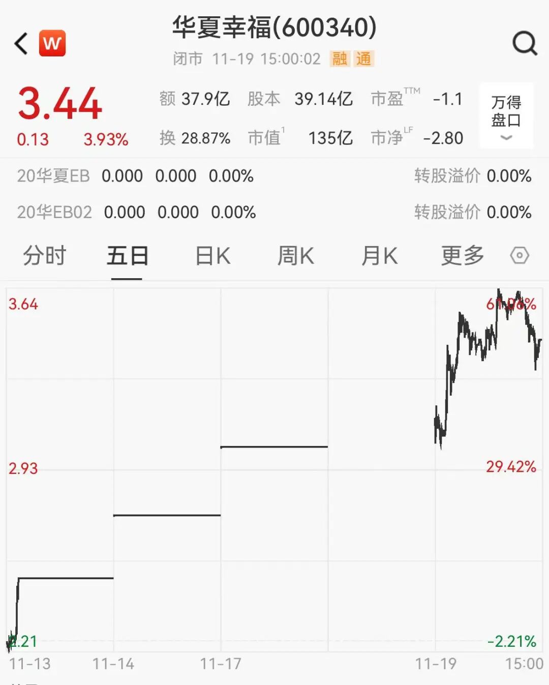 相比之下,资本市场反响强烈。近日,华夏幸福股票连续涨停,走出四连板。截至11月19日收盘,华夏幸福5个交易日累计涨幅达52.2%。11月20日午盘,跌5.81%。
