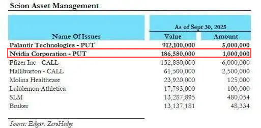 据悉,Michael Burry旗下的Scion基金,针对英伟达的看跌期权,名义价值达1.86亿美元。