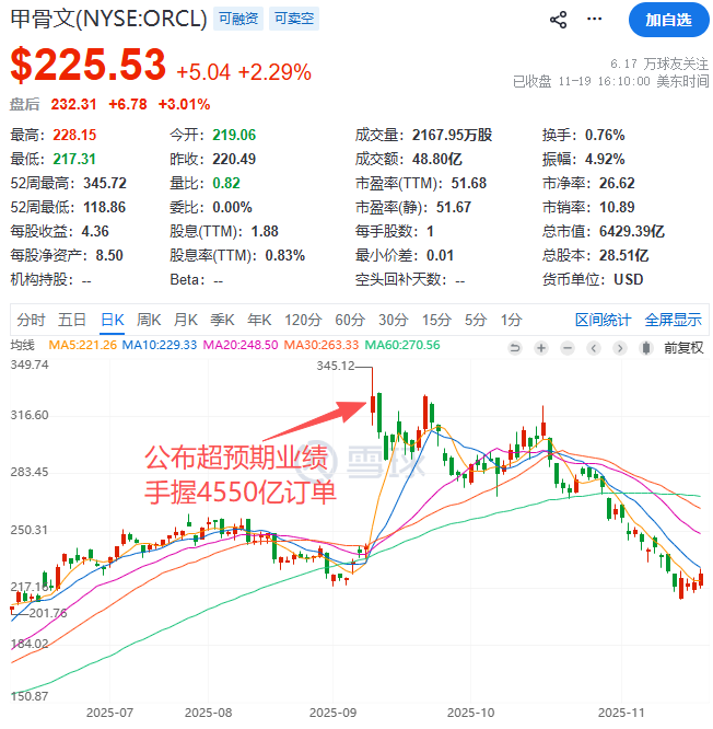 而上一个说“手握4550亿美元订单”的是甲骨文,创始人只当了一天全球首富,甲骨文股价随后经历了大幅回调。