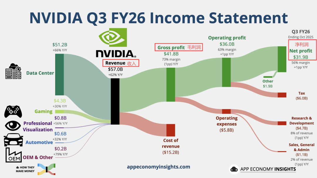 第三季度,英伟达营收570亿美元(4056亿人民币),同比增长62%;