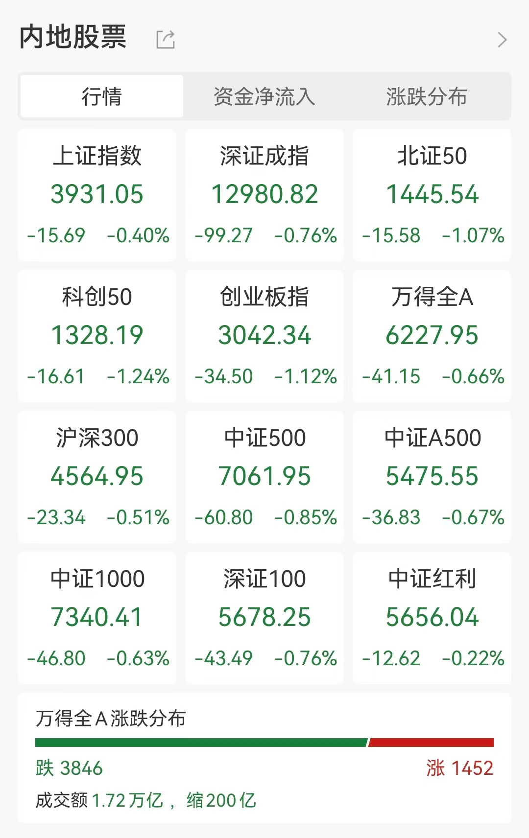 11月20日,A股市场震荡调整,截至收盘,沪指跌0.4%,深成指跌0.76%,创业板指跌1.12%,此前一度涨超1.5%。沪深两市成交额1.72万亿,较上一个交易日缩量200亿。盘面上,市场热点快速轮动,全市场超3800只个股下跌。