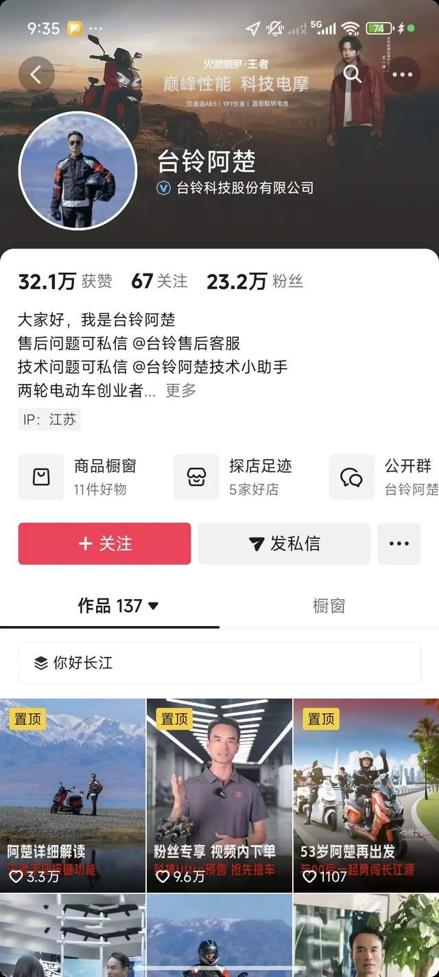 从线上布局看,2023年,台铃入局直播电商。截至2025年11月19日,台铃电动车官方账号拥有133.8万粉丝,抖音号介绍为“长续航世界纪录保持者”。其中,“台铃全球代言人”王一博出镜的一条电动车介绍视频,播放量已达15.7万次。