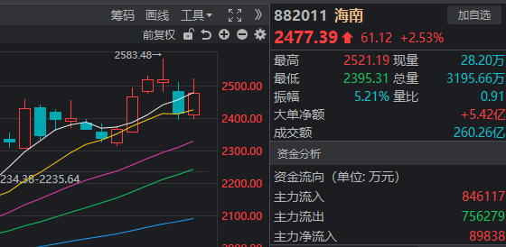以及本身偏情绪博弈,相对不看消息面的海南板块(或者说海峡两岸概念),在刚复牌的合富中国再度涨停影响下震荡走强,大致完成了对昨日的修复。