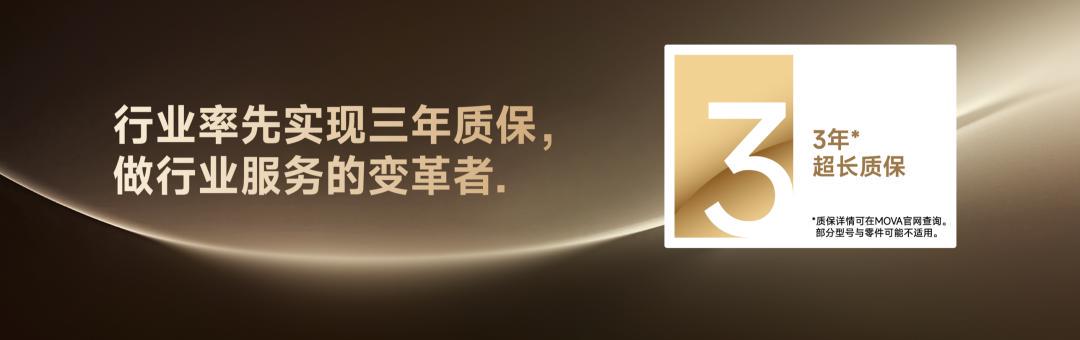 MOVA坚守长期主义的品质理念,将“品质”视为企业的生命线。基于对自家产品品质的深厚信心,MOVA率先在行业内实现了全品类三年质保的承诺,这一举措不仅彰显了企业的实力,更为消费者带来了实实在在的益处。