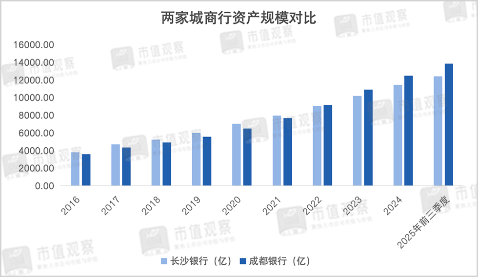 值得一提的是,长沙银行与同为城商行腰部梯队的代表成都银行差距不断拉大。早在2017年前长沙银行的业绩以及资产规模均在成都银行之上,但此后成都银行逐渐后来居上,2018年先实现了净利润赶超,2022年在资产规模上又完成了超越。