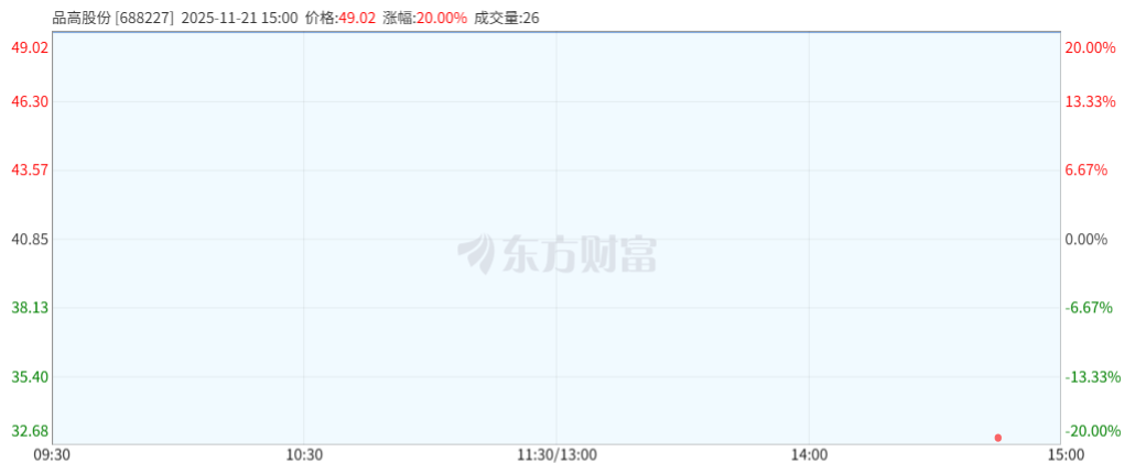 11月21日,总部位于广州的国产软件科创板上市公司品高股份接连发布多份公告,包括变更公司总经理、对算力芯片初创公司江原科技增资投资4亿元、12%股权转让等重要事项。11月21日,品高股份股票开盘涨停20%封板,直至收盘未开板,总市值55.42亿元。