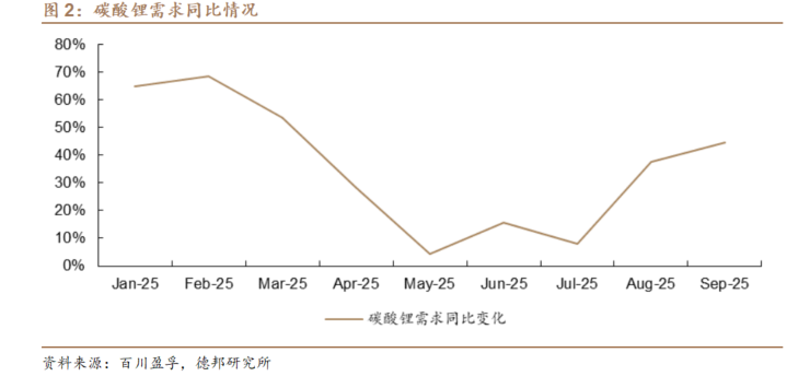 碳酸锂价格盘中突破10万元。据百川盈孚,近期碳酸锂需求持续强势,下游排产维持高位,动力电池领域订单充足,储能项目需求持续超预期,磷酸铁锂企业开工率维持在高位,六氟磷酸锂订单高位,产能较紧张。碳酸锂价格大幅上涨,下游散单采购意愿较差,刚需为主,多后点价结算。从消费数据来看,7-9月碳酸锂月度表观消费量同比增速持续提升,9月同比上行约44.5%。需求端带动下,碳酸锂价格近期持续上行,盘中突破10万元。