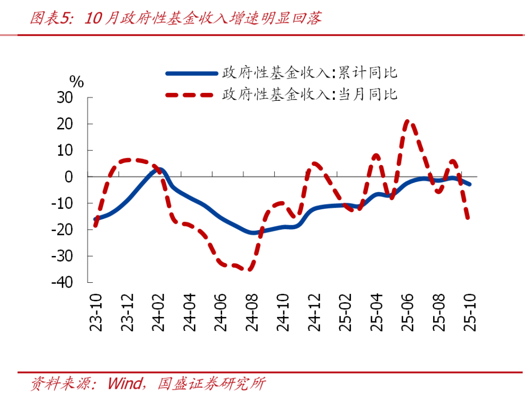 2、10月政府性基金收入增速再度转负,土地出让收入降幅走扩;专项债发行完毕、叠加基数走高,政府性基金支出明显放缓。