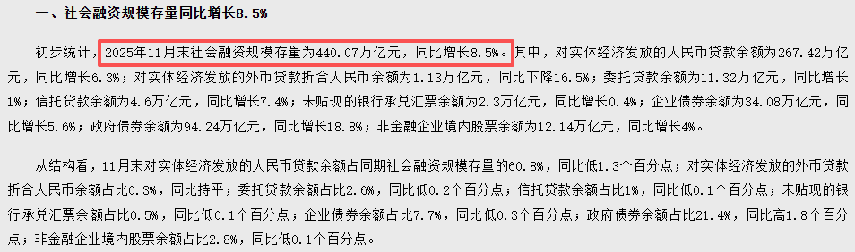 央行公布了最新11月的金融数据报告, 基本上,今年经济全貌差不多显现。