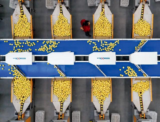 2025年10月,四川安岳县一家以生产柠檬鲜果为主的企业,运用电脑程序控制和AI智能算法,实现柠檬原果上线、清洗、杀菌、选果定等流水线作业。图/IC