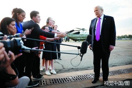 美国总统特朗普此前在莫里斯敦机场登机前接受记者采访。