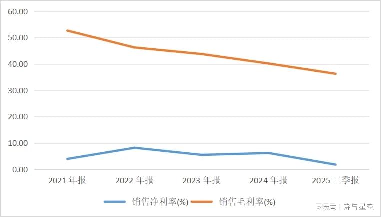 净利率从2024年同期的约5.58%降至2025年前三季度的1.74%,同比降幅达73.02%,显示公司在收入下降的同时,费用控制未能有效改善。