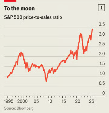你或许会认为,像查诺斯先生这样押注股价下跌而非上涨的做空者,正期待一场盛宴。毕竟,许多股市已接近历史高点,显然不乏诱人的目标。传统的股票估值方法(将股价与基本面如盈利、销售额或资产进行比较)显示,美国股票的昂贵程度几乎与互联网泡沫时期相当,甚至更甚(见图表1)。而且,投资者对AI尚未证实的盈利能力如此自信,以至于支持公司将数据中心送上太空。在希望如此高涨之际,押注失望情绪似乎从未如此诱人。
