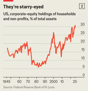 尽管有明显的动机描绘悲观前景,但我们的受访者观点恰好涵盖了其他专业资管人士的整体看法范围。查诺斯先生担忧“类似于2021年、甚至25年前的那种狂热”,并指出散户投资者如今对股市的敞口甚至超过了互联网泡沫时期。布洛克先生则持相反立场:“我不认为这里存在巨大的泡沫,”他说,因为估值最高的企业巨头已展现出卓越的盈利增长。莱夫先生则认为,“市场太拥挤、技术又太令人兴奋”,不太可能出现崩盘。“但可能会出现回调,”他说,一旦“周期转向”。