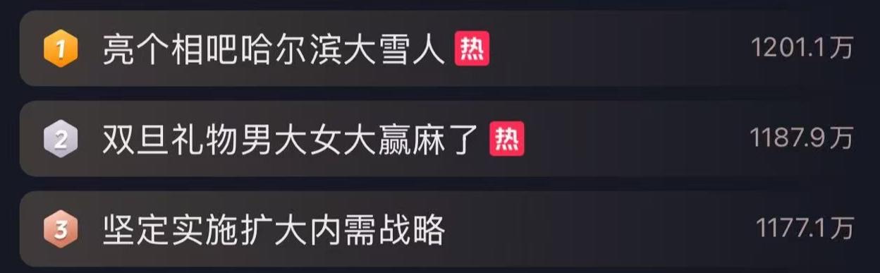 12月16日晚,“亮个相吧哈尔滨大雪人”话题登顶抖音热榜。(图片截自抖音App)