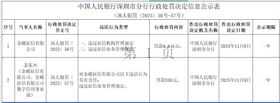 监管公示信息显示,近日,金蝶相关征信主体因违反征信机构和征信业务相关管理规定,被处以4.4万元的罚款,数字信用事业部相关负责人也被处以500元的行政处罚。