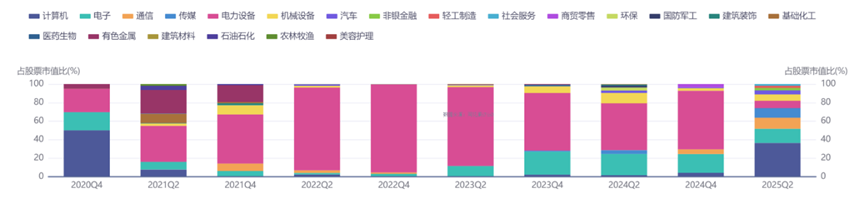 2025年一季度,随着人工智能为代表的科技风口兴起,中信建投智信物联网开始转变投资方向,电子、通信等行业进入前十大重仓股。2025年中期,计算机、电子、通信、传媒等科技行业合计持仓比重达到73.98%。