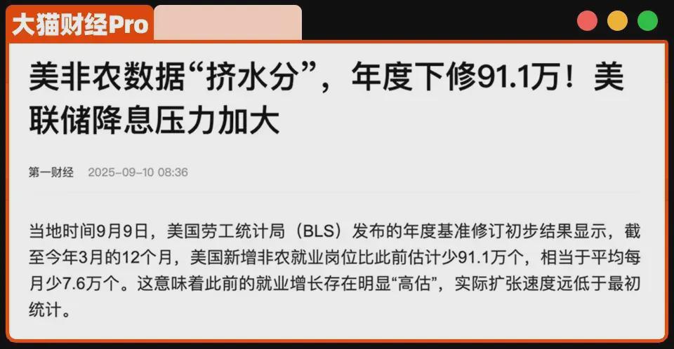 结果呢,就业数据全是水分,说是新增179万,结果下修了91万,超过一半都是虚的,也就是说,经济根本没那么好,所以降息就是必然的。