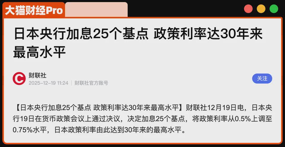 19号,日本定了要加息25个基点,这是今年第二次加息,利率达到0.75%,30年来最高。