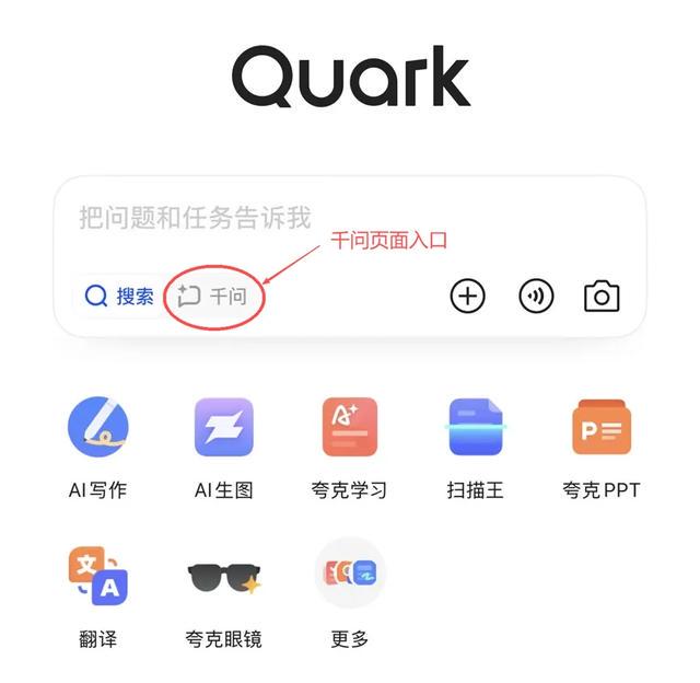 夸克搜索框中的千问按钮,可以直接进入千问页面