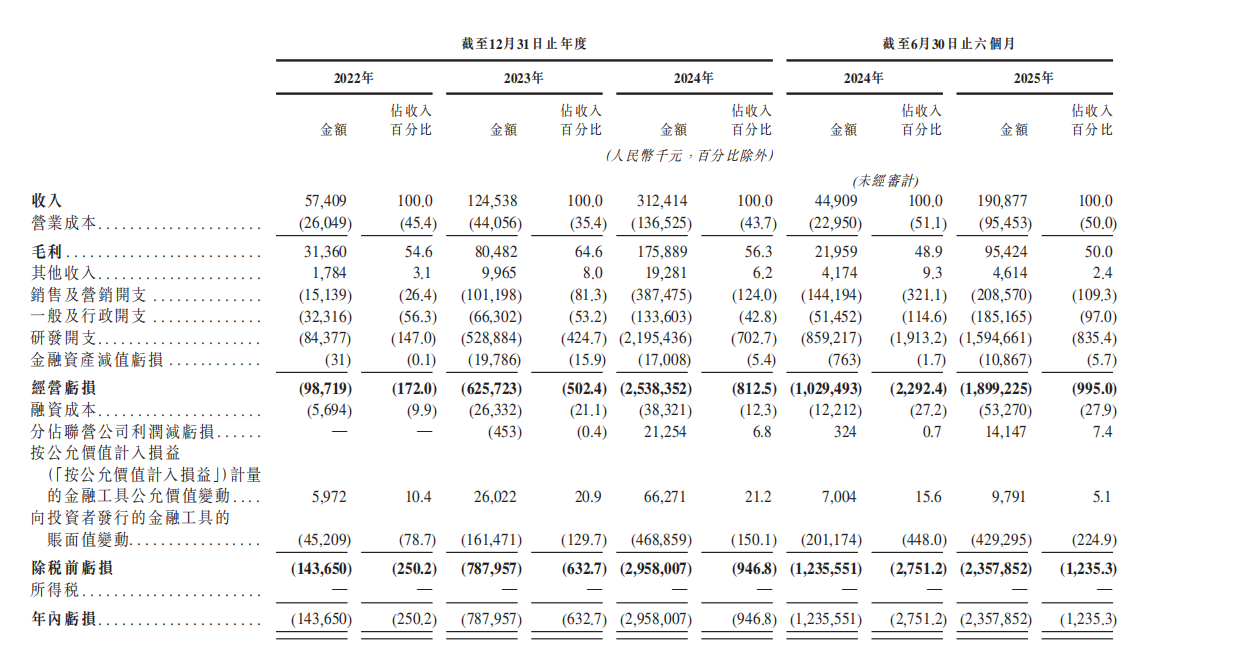 据智谱招股书披露,2022年、2023年、2024年公司收入分别为5740万、1.245亿、3.124亿,2022年到2024年的年收入复合年增长率达到130%;2025年上半年收入为1.9亿,较2024年同期增加超1.4亿元。