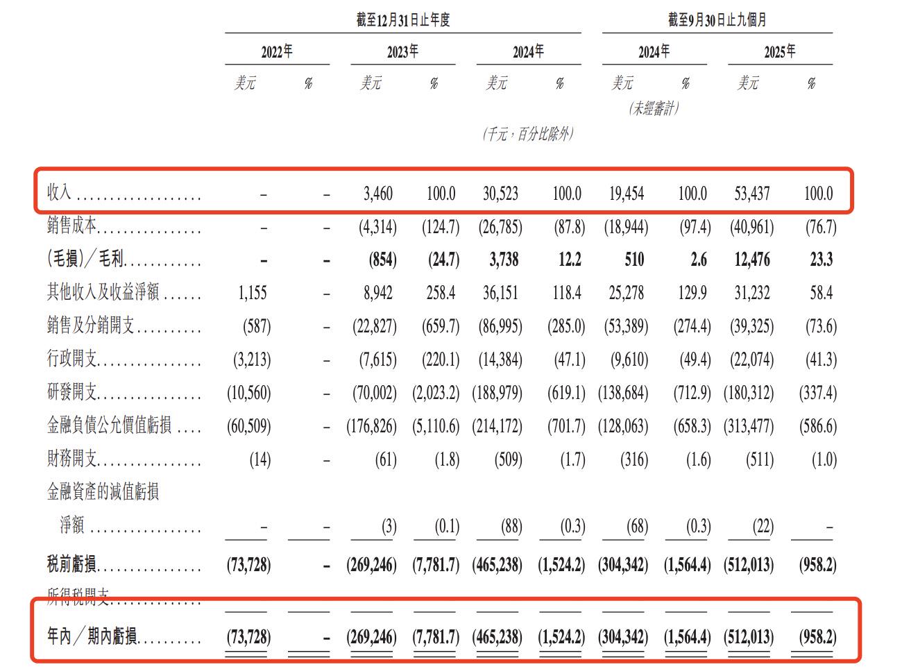 据招股书,2022年至2024年以及2025年上半年,智谱分别实现营收5741万元、1.25亿元、3.12亿元、1.91亿元,亏损额度分别为1.44亿元、7.88亿元、29.58亿元、23.58亿元,导致亏损的主要原因同样是大量研发投入。