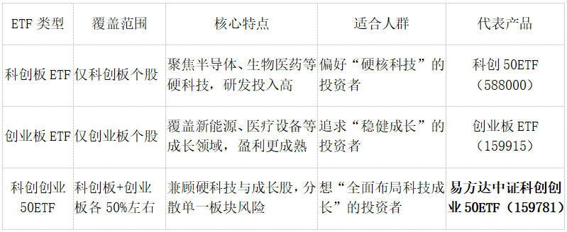 不同需求对应不同玩法,易方达中证科创创业50ETF(159781)几乎适配所有科技投资场景: