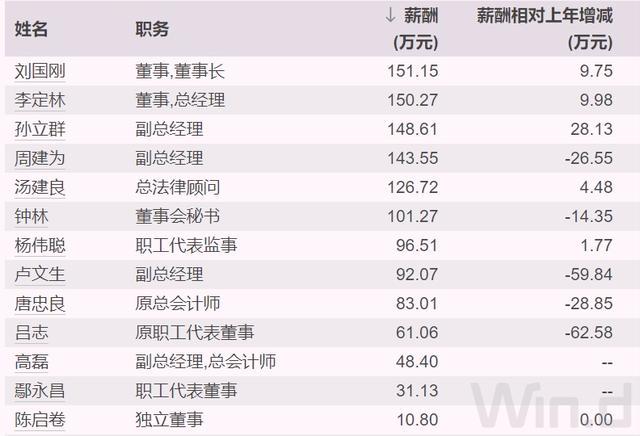 根据公司年报,董事长和总经理薪酬基本一致,都超过150万元;其余高管薪酬多超过百万元。