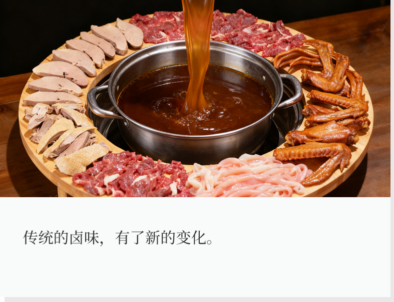 直接将卤汤作为火锅锅底,搭配新鲜食材现场涮煮。
