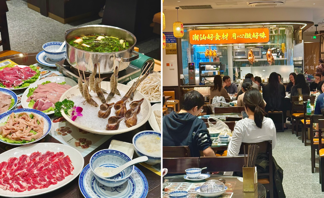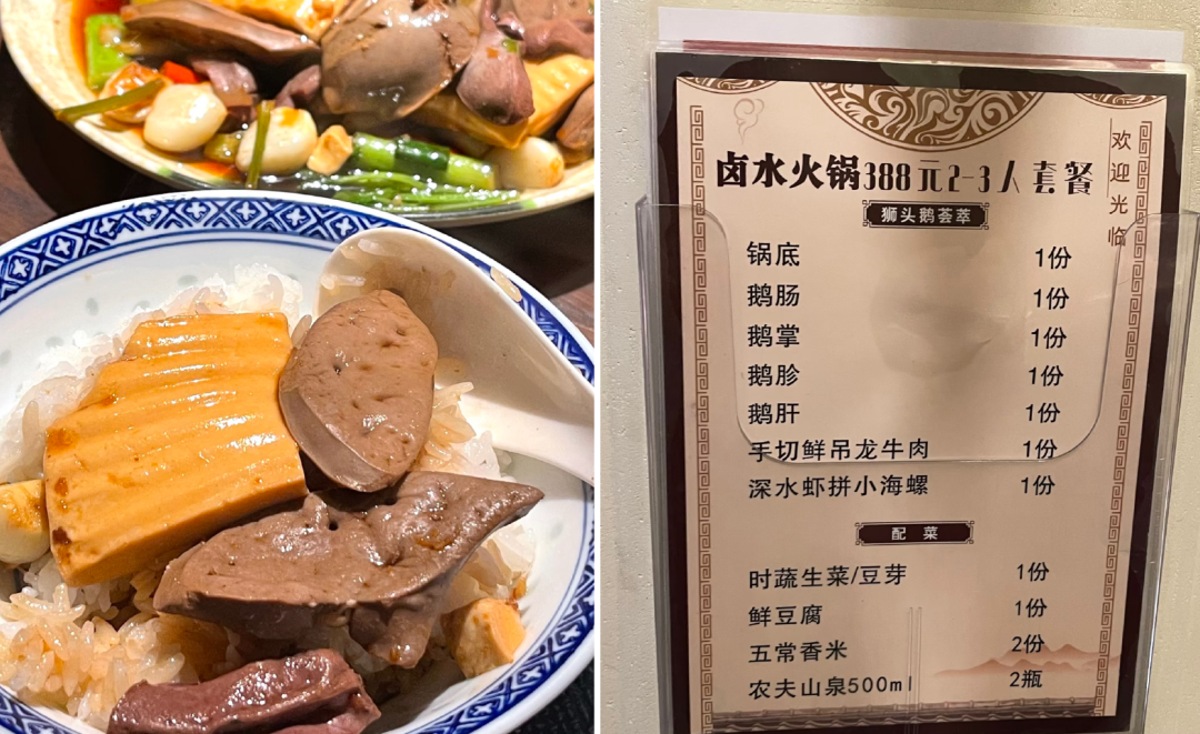 在北京工体北路,主打潮汕卤水火锅的“卤鼎记”在前段时间开业:每日新鲜狮头鹅空运到店,菜单中既有卤水火锅,也有潮汕海鲜小炒、生腌和各类小吃,店内装修以潮州文化元素为主;