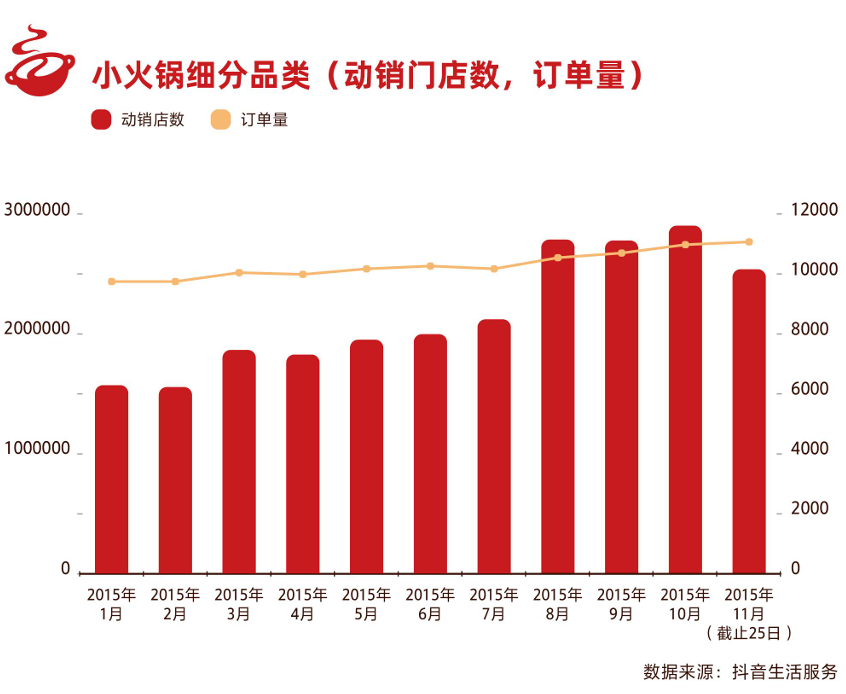 其中,最为鲜明是以小火锅品类为代表的“一人食”场景的扩容。抖音生活服务数据显示,2025年,小火锅订单量从1月约157万单增长至10月约290万单;2025年1月1日-11月25日,“火锅一人食套餐”订单量同比增长213.73%,GMV同比增长115.67%。