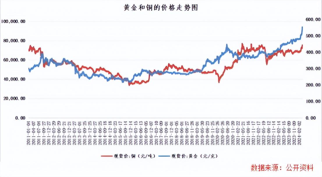这是因为,当市场避险情绪升温时,黄金作为传统“避风港”需求激增,价格上涨;反之,当经济进入扩张期,工厂开工、建设加速,市场对铜的需求大幅增长,于是推动铜价上涨。