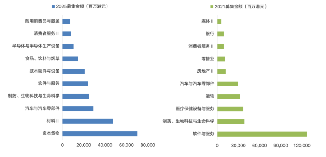 图:2021、2025 IPO资金规模分行业对比