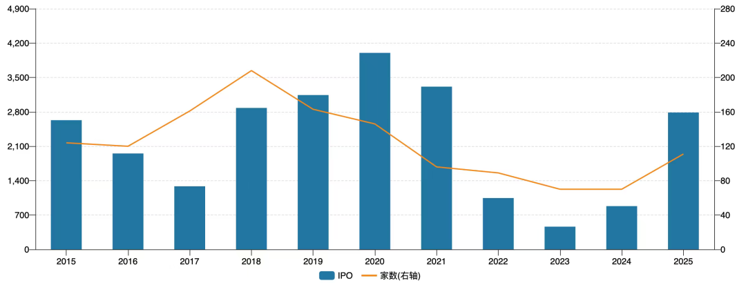 近年来,港交所不仅向AI、芯片等领域的科创企业敞开大门,更在2024年降低了特专科技公司(18C)的市值要求。与此同时,证监会明确支持企业“出海”上市,进一步丰富了资产端的供给。正是这一系列政策组合拳,与2024年底以来回暖的市场表现形成共振,最终造就了2025年IPO市场的繁荣。