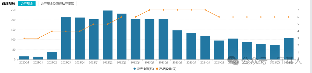 受此影响,其管理规模持续缩水,截至2025年二季度末,管理规模已降至73.47亿元,较峰值时蒸发超170亿元,顶流光环大幅褪色。
