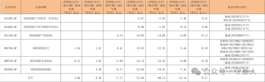 但与之形成鲜明反差的是,2019年至2025年上半年,施成管理的6只基金合计亏损高达156.72亿元。