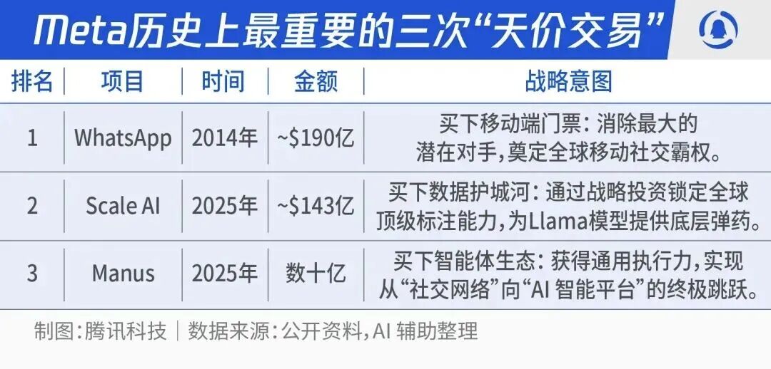 Meta花这么高价格收购Manus还让创始人肖弘出任副总裁,很多人质疑小扎是不是病急乱投医脑子不好使了。实际上恰恰相反,小扎从来都是不做亏本买卖。
