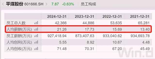 至2024年末,该公司职工总数超过4.2万人,和2021年相比,减少大约2.3万人超过1/3。2024年,人均创利还剩下5.6万元,人均税前薪酬则提高到超过21万元,比2021年增加近8万元。
