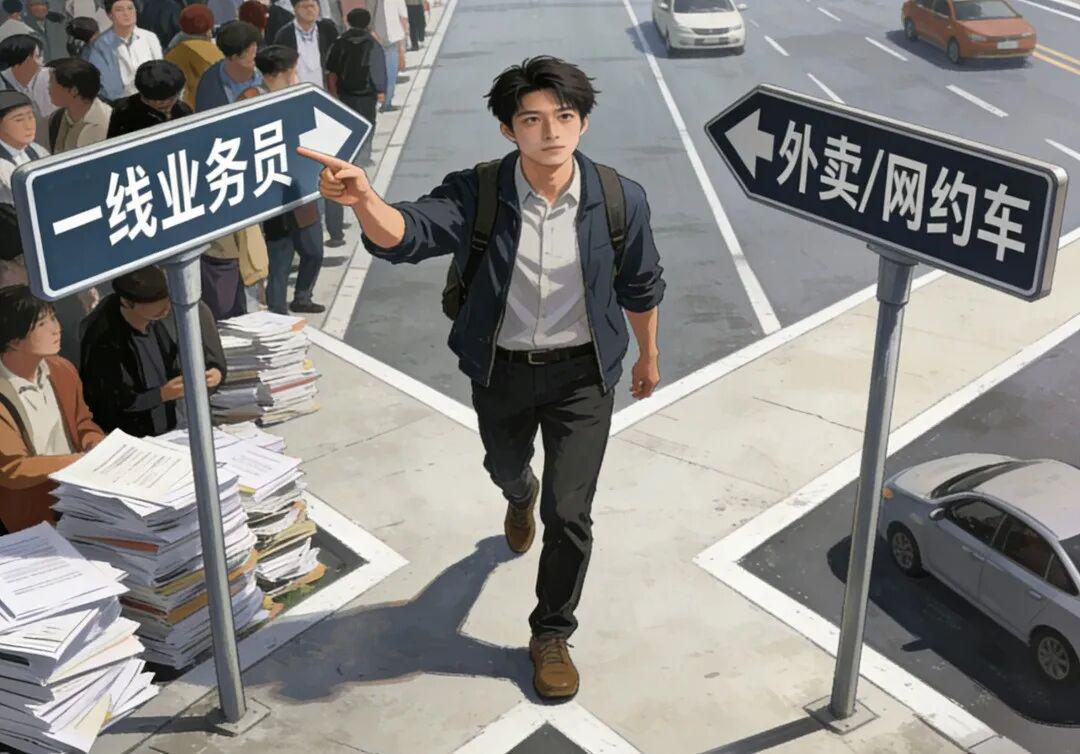 原因很简单,送外卖的话时间相对自由,收入透明且即时结算;当业务员则需要长时间在外奔波,绩效考核严苛,薪资结构复杂,而且晋升通道也相对模糊。