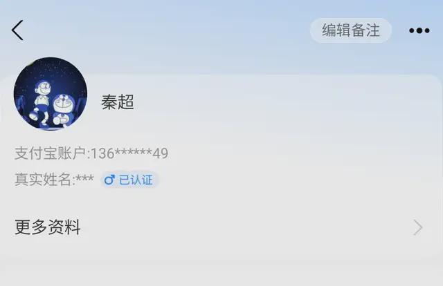 据叩叩财经确认,136XXXX3549该号码所绑定的支付宝账号为一名实名认证为秦超的自然人。