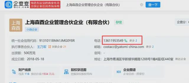 此外,由顾强和王乃军共同控制的另一家企业——上海森酉企业管理合伙企业(有限合伙),在工商信息中登记的联系电话也为136XXXX3549。