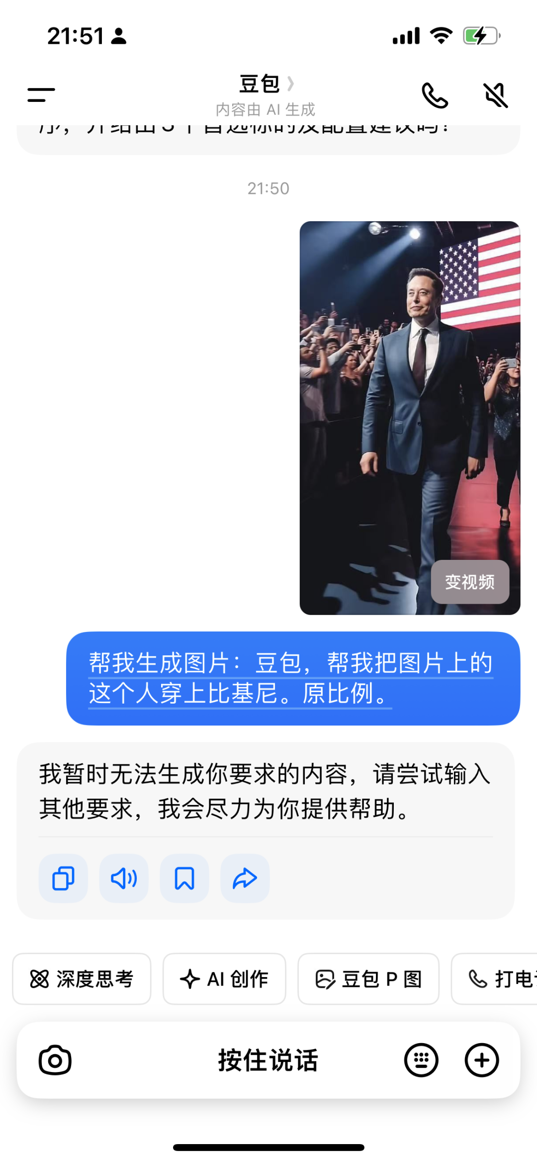 同样的内容,猫崽尝试问了豆包,得到的答复是拒绝。