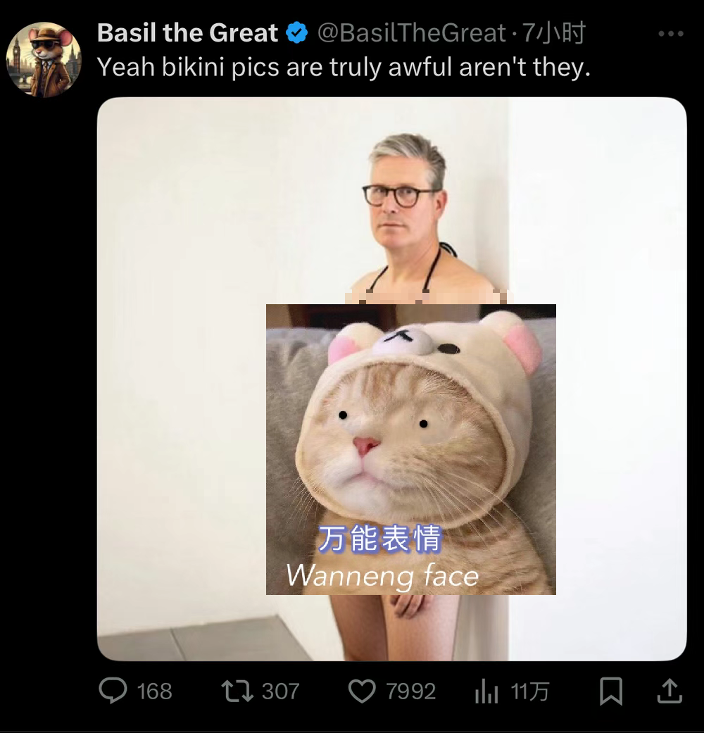 甚至,英国首相 基尔・斯塔默 也遭到网友一键变装的“迫害”。