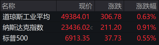 ►►美股三大股指连续第二个交易日收高,截至周四收盘,道指涨0.63%,标普500指数涨0.55%,纳指涨0.91%。小盘股表现尤为活跃,罗素2000指数上涨0.76%,创收盘纪录新高。