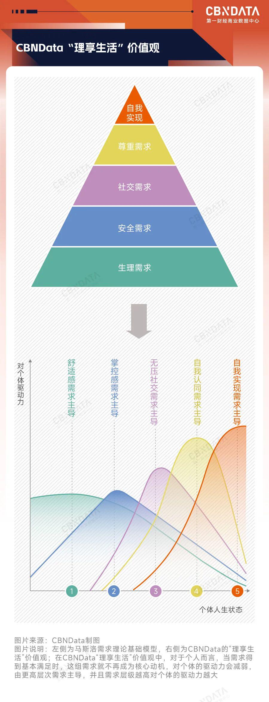 基于此,CBNData以马斯洛需求理论为参照,聚焦当代消费者在理享生活追求中涌现的“新需求”,延伸出一套以“舒适感、掌控感、无压社交、自我认同与自我实现”为核心的“理享生活价值观”。这些不同层次的价值观,正借由科技与品类的融合逐步实现。